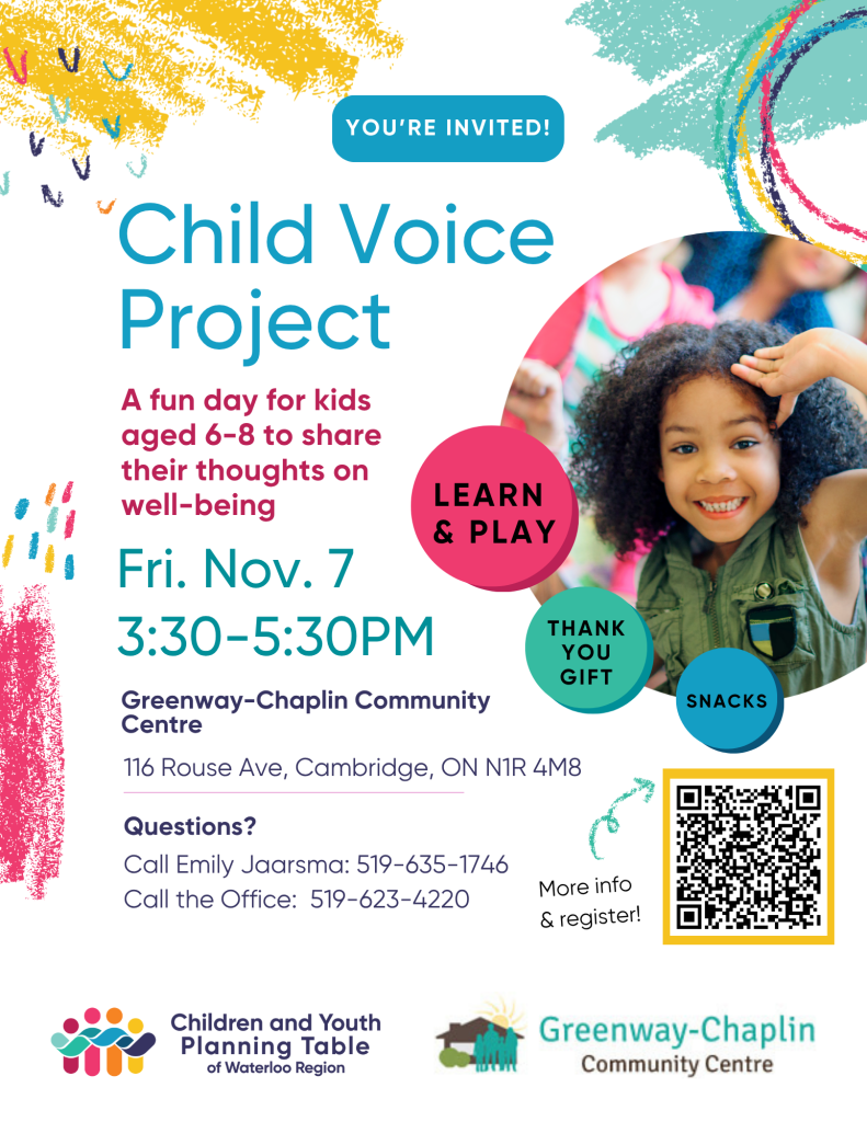 Child Voice Project Event will be held at Greenway-Chaplin on Friday Nov. 7. Scan the QR to register today.
