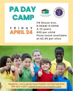 Caregivers and children are invited to Greenway-Chaplin (116 Rouse Ave) on Thursdays 9 to 11 am.